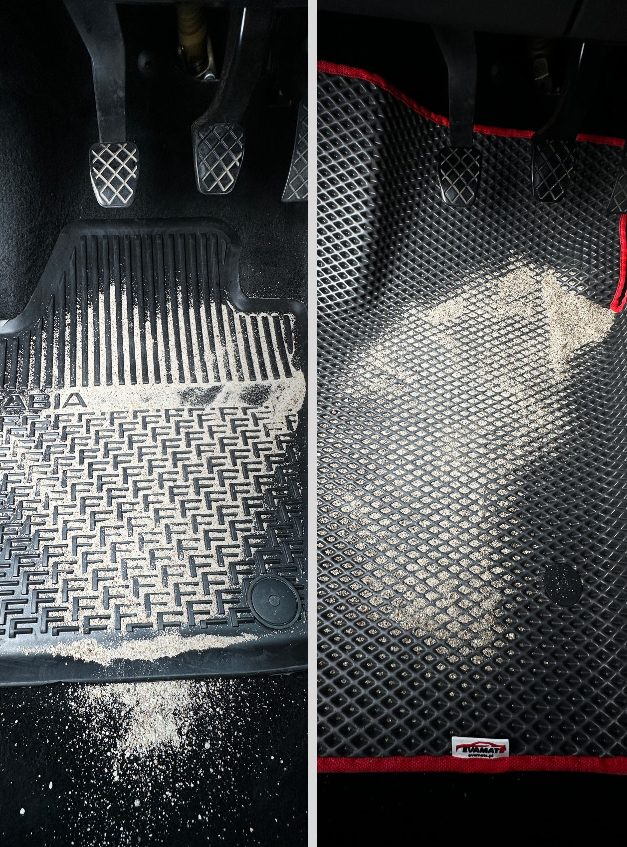 In EVA-Matten werden Schadstoffe in technologischen Zellen eingeschlossen. Außerdem sind sie viel leichter und lassen sich dadurch leichter aus dem Auto entfernen. Sie erfordern auch keine spezielle Reinigung.