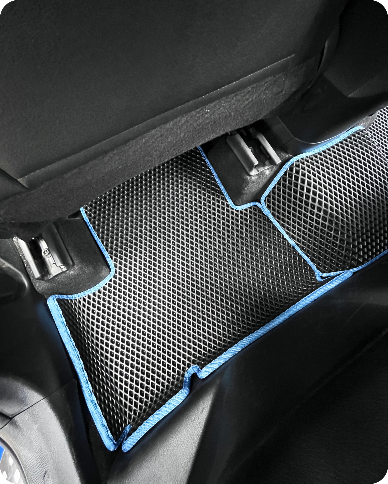Evamats-Matten decken bis zu 98 % des Bodens ab, daher kümmern wir uns um jedes Detail, sodass auch der hintere Tunnel abgedeckt ist und so sichergestellt wird, dass der Boden immer sauber ist.